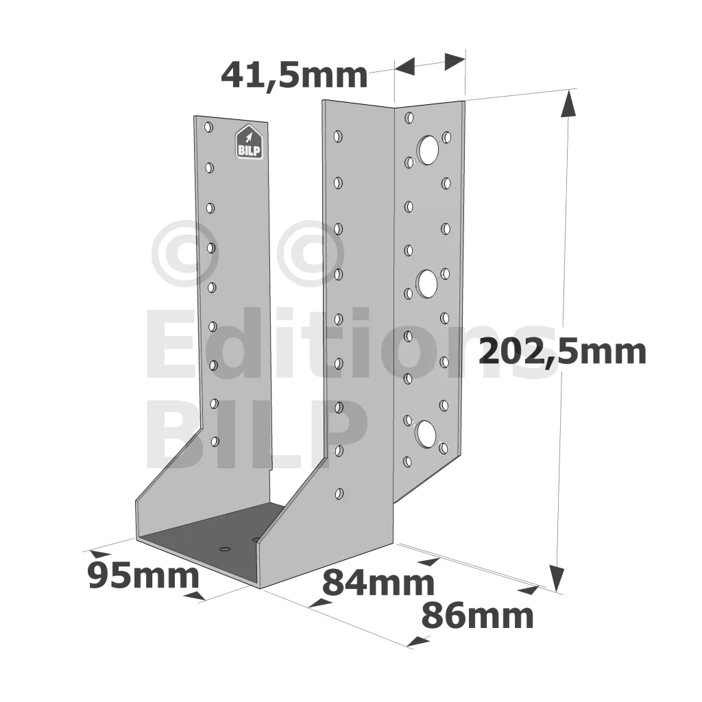 - Robustesse et épaisseur : Fabriqués en acier galvanisé, ces sabots à ailes extérieures classiques sont extrêmement résistants à la corrosion et offrent une épaisseur adaptée pour supporter des charges lourdes.