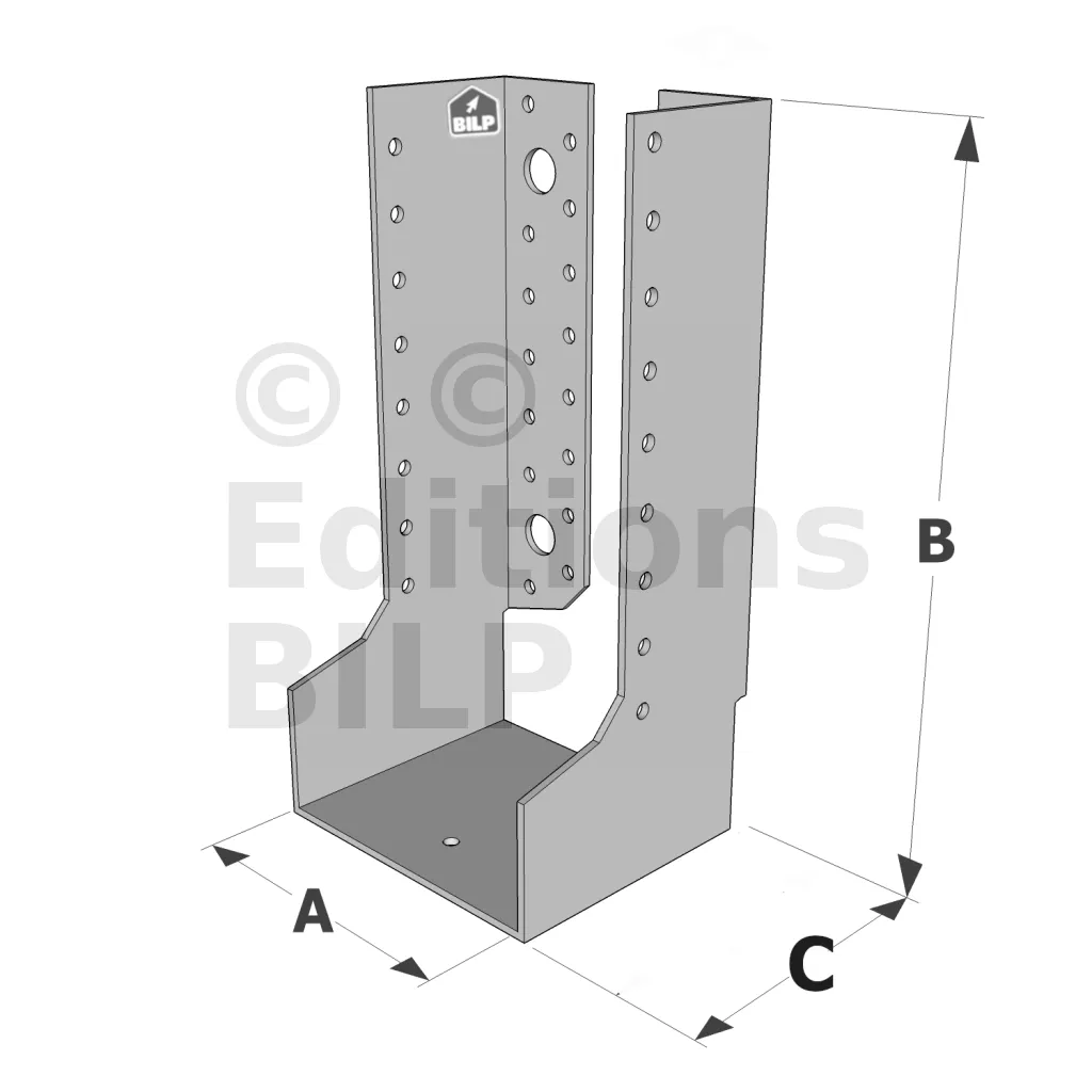 - Charpentes de toit : Ces grands sabots sont utilisés pour fixer solidement les poutres et les chevrons, assurant la stabilité de la structure du toit.