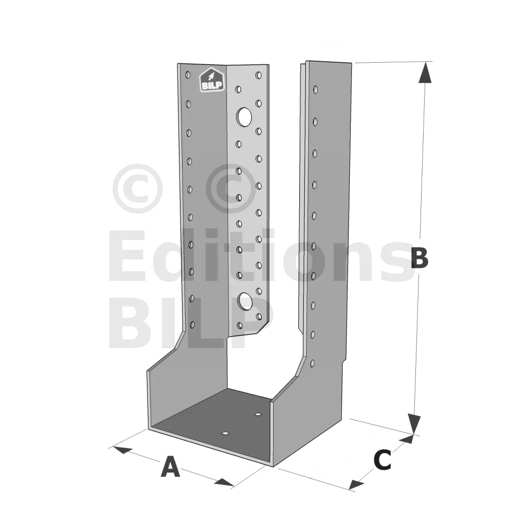- Charpentes de toit : Ces grands sabots sont utilisés pour fixer solidement les poutres et les chevrons, assurant la stabilité de la structure du toit.