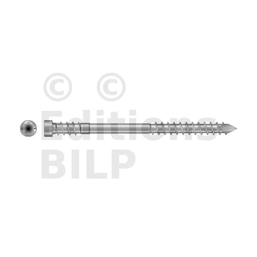 La vis pour terrasse bois durs DSPRO A4 est préconisée pour pour la réalisation de terrasses et assemblages en bois exotique dur.