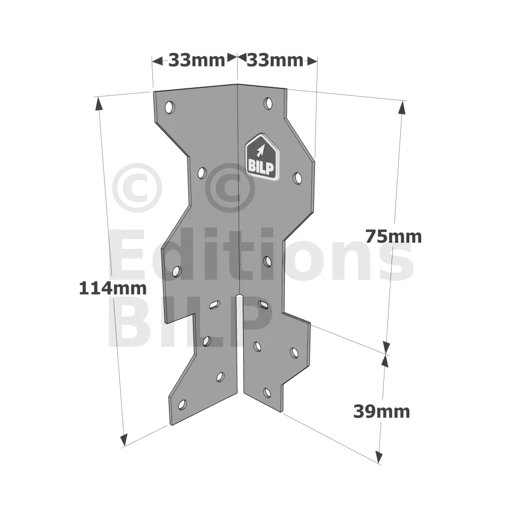 L‘équerre pliable A35 présente deux atouts majeurs : le Speed Fix qui permet le prépositionnement de l‘équerre avant le clouage et deux parties pliables sur chantier qui permettent, suivant les configurations, de reprendre des efforts jusqu‘à trois directions.