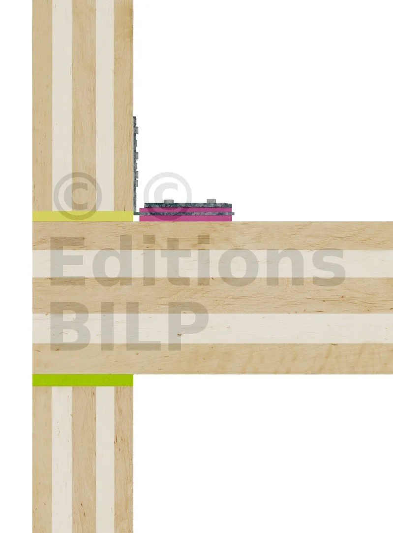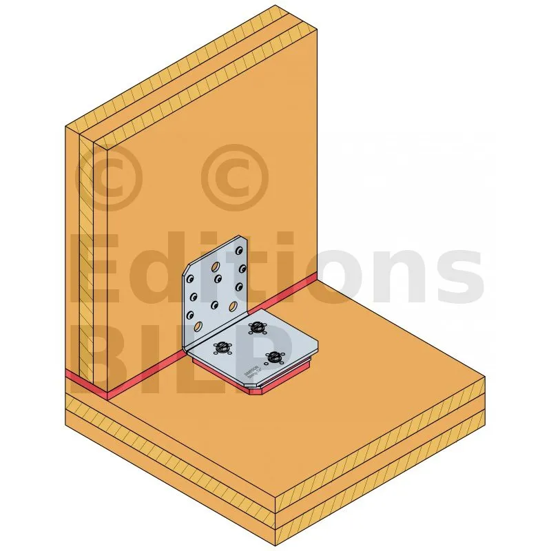 L’équerre acoustique ABAI est une équerre innovante car elle associe une équerre classique à un matériau d’isolation acoustique, la Sylodyn®. Elle permet la connexion entre éléments de mur et de plancher en panneaux multiplis (CLT), tout en garantissant une isolation phonique entre ces composants grâce à une bande de Sylodyn® de 12 mm préinstallée sous l’équerre.