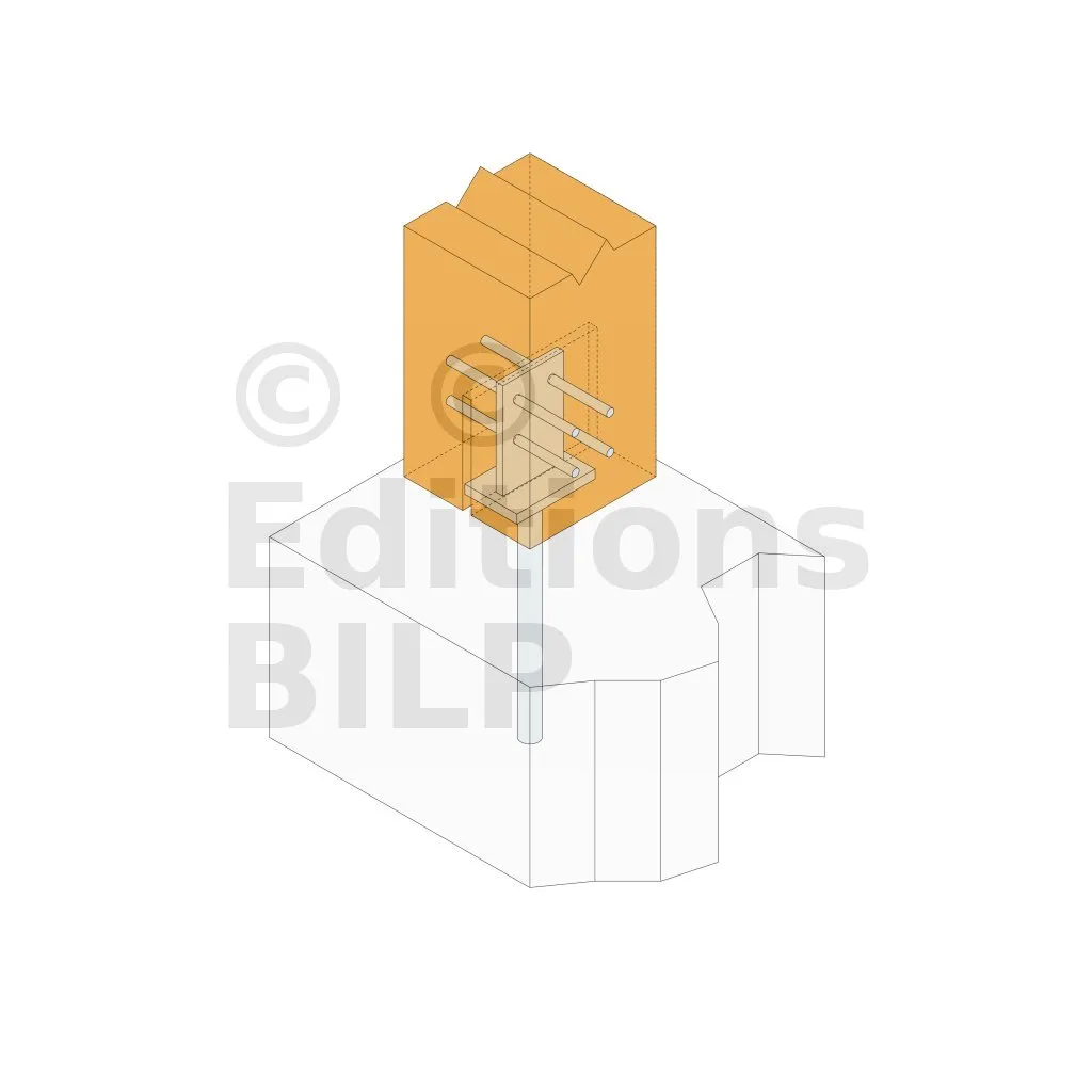 4. Le pied de poteau peut aussi être noyé dans le béton au moment où ce-dernier est coulé.