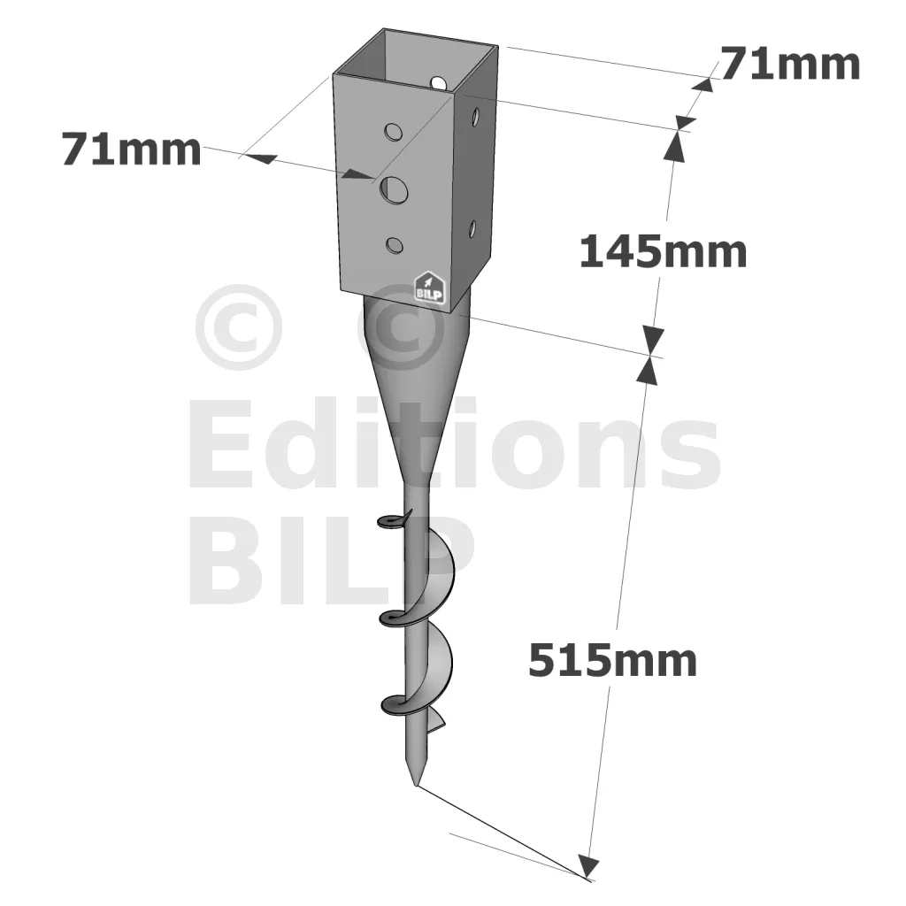 Pied de poteau carré de jardin à visser - Réf. PPJST70/660