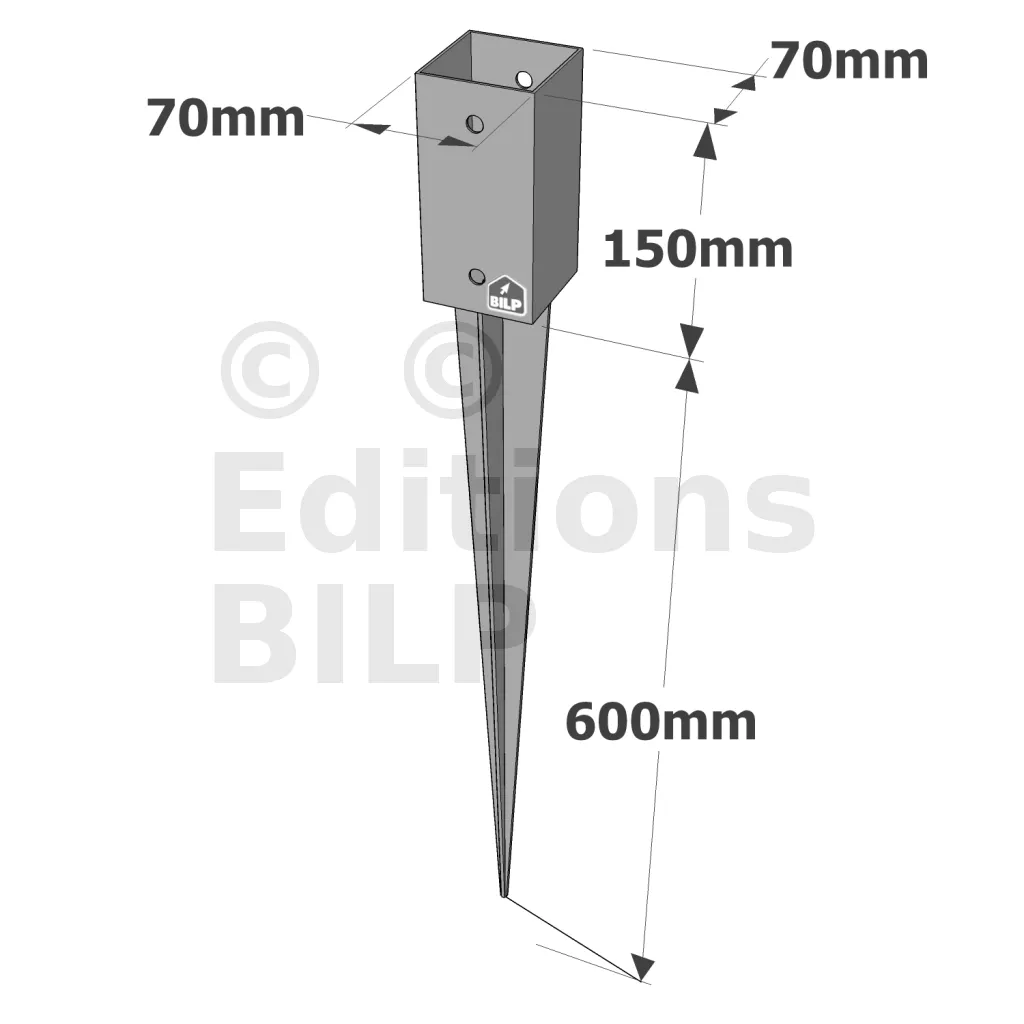 Pied de poteau carré de jardin à enfoncer - Réf. PPJET70/750