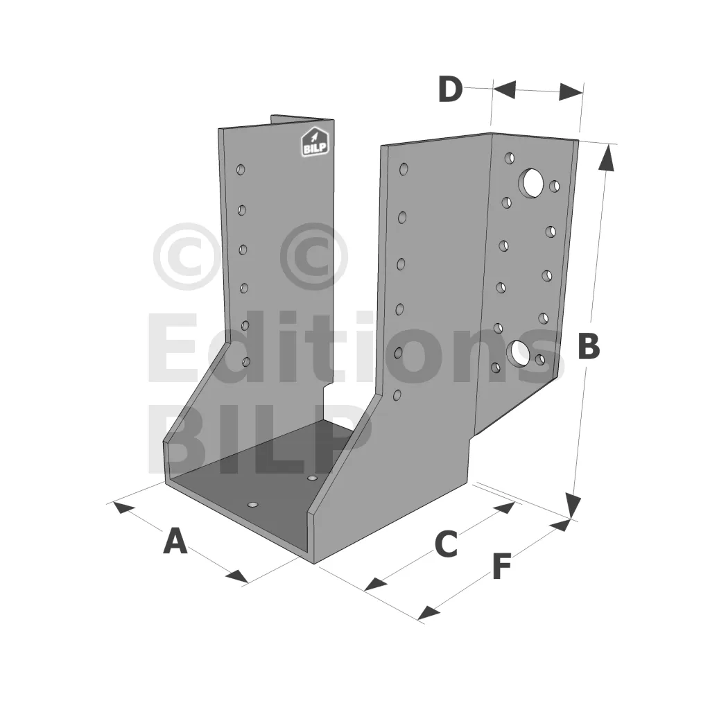 Les sabots GSE en acier galvanisé offrent une flexibilité grâce à des largeurs au choix selon les plages indiquées. Cette caractéristique permet de s’adapter parfaitement aux dimensions spécifiques des éléments de construction, garantissant une compatibilité optimale et une fixation stable.