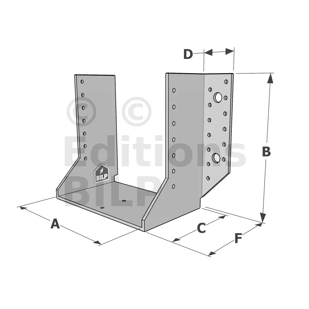 Les sabots GSE en acier galvanisé offrent une flexibilité grâce à des largeurs au choix selon les plages indiquées. Cette caractéristique permet de s’adapter parfaitement aux dimensions spécifiques des éléments de construction, garantissant une compatibilité optimale et une fixation stable.