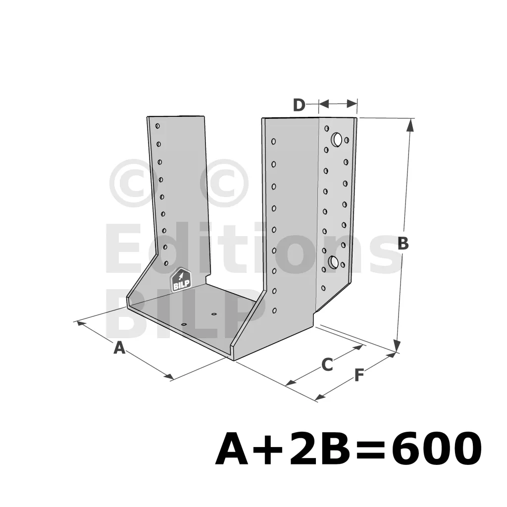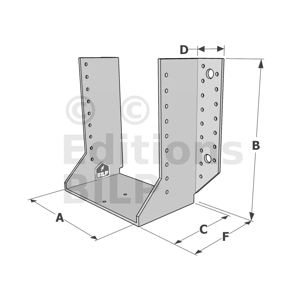 Grands sabots à ailes extérieures, gamme GSE CLASSIQUE (épaisseur 4mm, profondeur 110mm) - Réf. GSE600/4X-AL