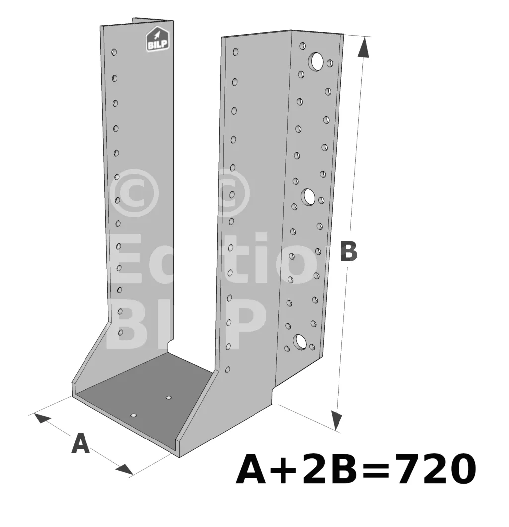 Les sabots GSE en acier galvanisé offrent une flexibilité grâce à des largeurs au choix selon les plages indiquées. Cette caractéristique permet de s’adapter parfaitement aux dimensions spécifiques des éléments de construction, garantissant une compatibilité optimale et une fixation stable.