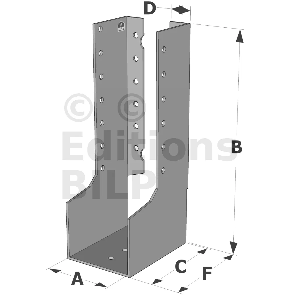- Robustesse et discrétion : Grâce à leur conception en acier galvanisé, ces sabots sont robustes et résistent aux conditions climatiques difficiles. Les ailes intérieures permettent une intégration discrète, préservant l’esthétique de la structure.