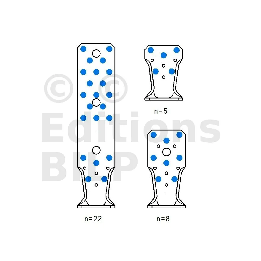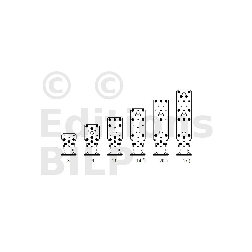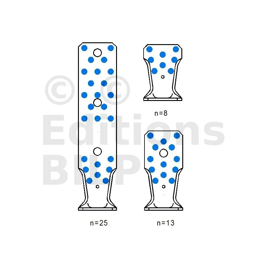 | A | B | C | Ep. | Perçages Aile A | Perçages Aile B | ||||