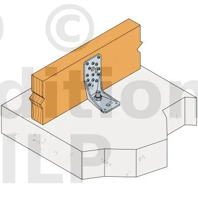 Voir la gamme d’ancrage Simpson Strong-Tie pour trouver le produit adéquat. Les solutions d’ancrage typiques sont BOAXII, SET-XP, WA, AT-HP et dépendent du type de béton, l’entraxe et les distances aux bords.