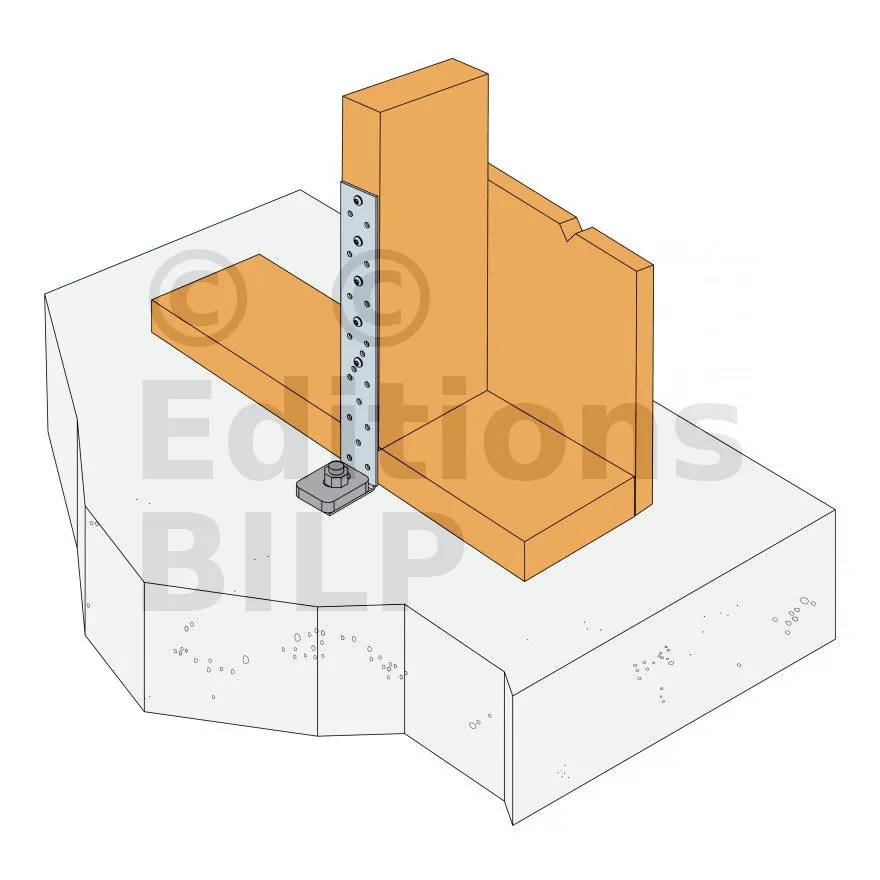 - Permet d‘ancrer solidement le mur ossature bois au sol (préconisé en zone sismique),