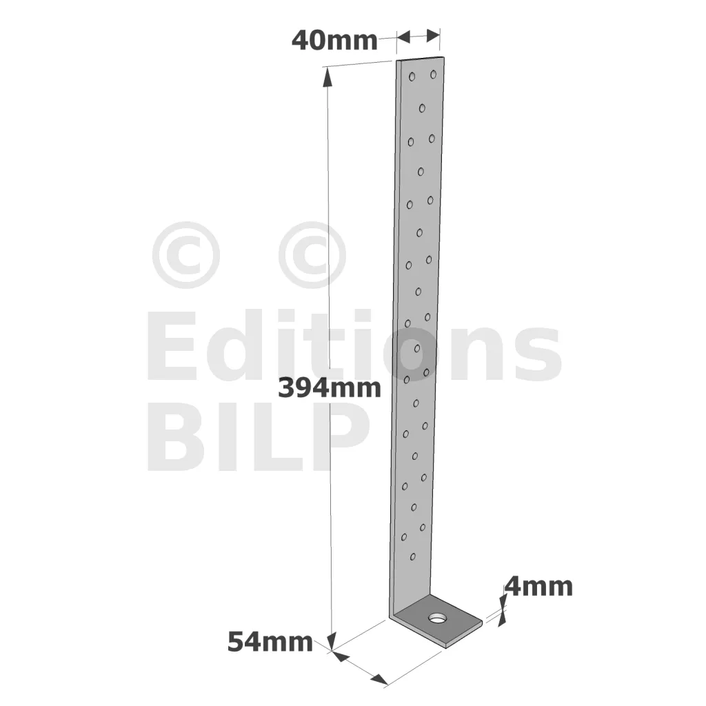 Ancrage pour montant d’ossature 40x394x54mm épaisseur 4mm - Réf. AH39050/4-FR