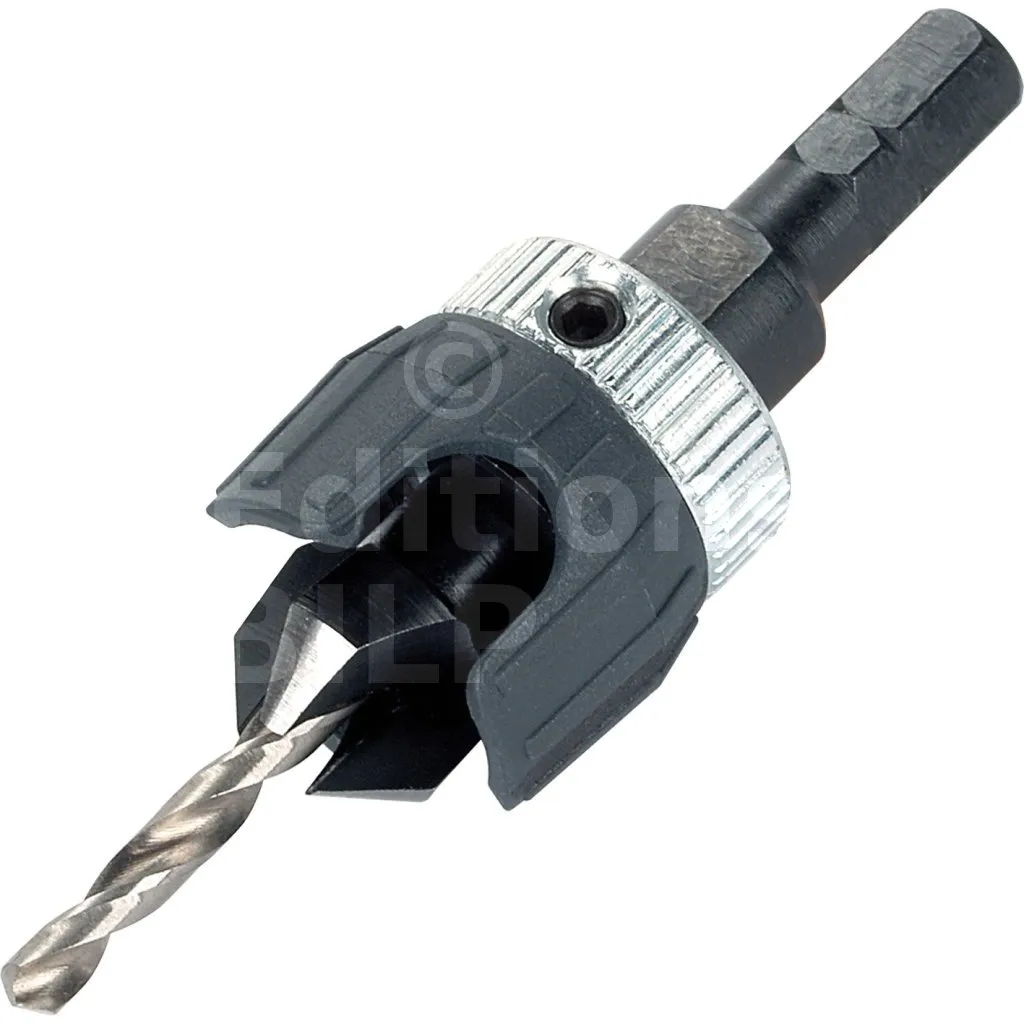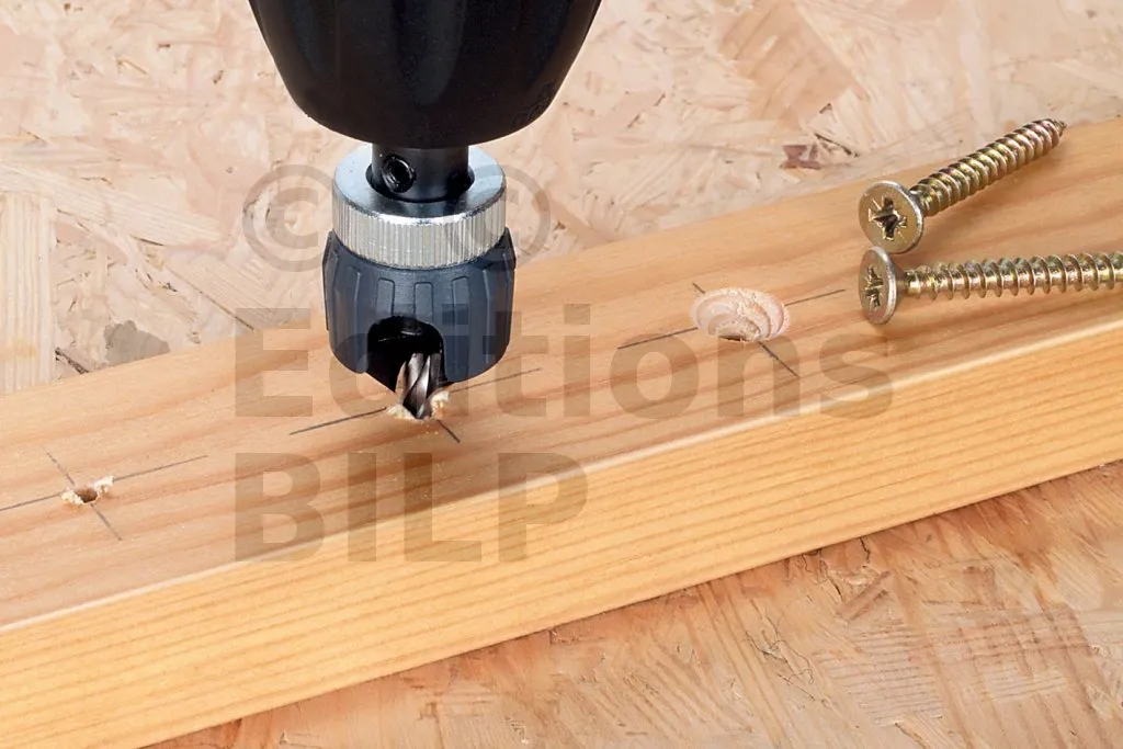 La butée de profondeur permet d’obtenir une cuvette fraisée absolument parfaite et identique à toutes les autres.