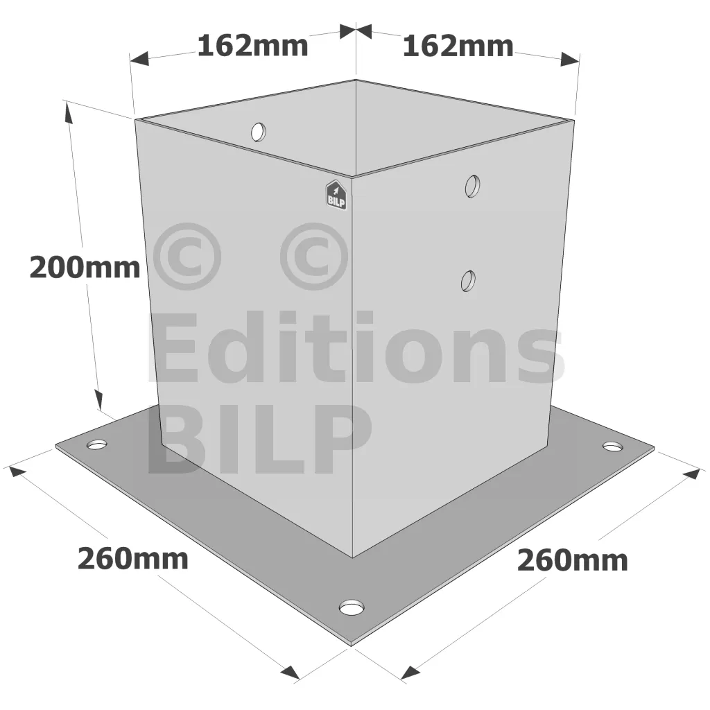 Pied de poteau carré à boulonner - Finition GALVANISEE - Réf. PPJBT160