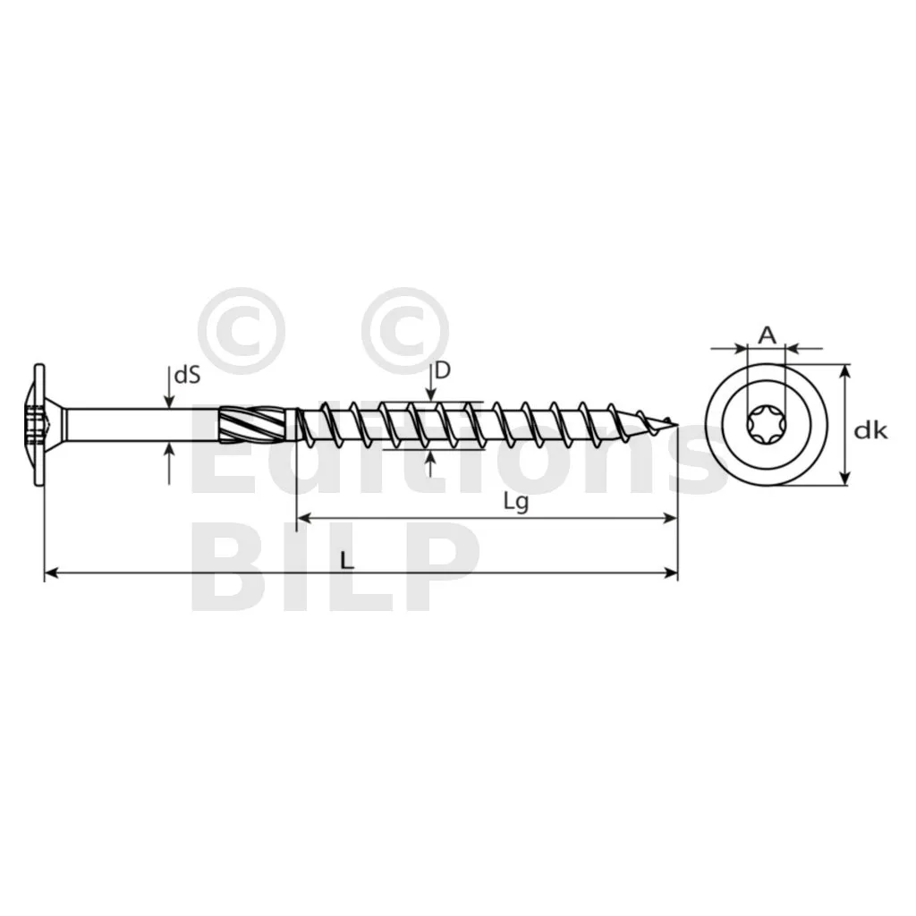 La vis charpentier tête large bombée et utilisée pour les liaisons bois/bois dans la construction bois (par ex. isolation de toiture, cadres en bois, combles, construction d’éléments, préfabriqué, escaliers etc.).