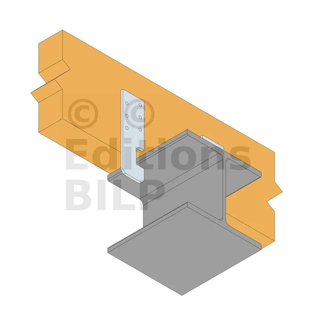 L‘ancrage IPN permet la fixation de solive bois sur poutre en I métallique de type IPN. Cette fixation est assurée par encoches.
