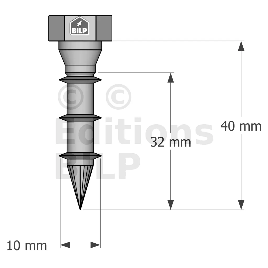 - Marquage de la tête incluant la longueur en mm facilitant le contrôle,