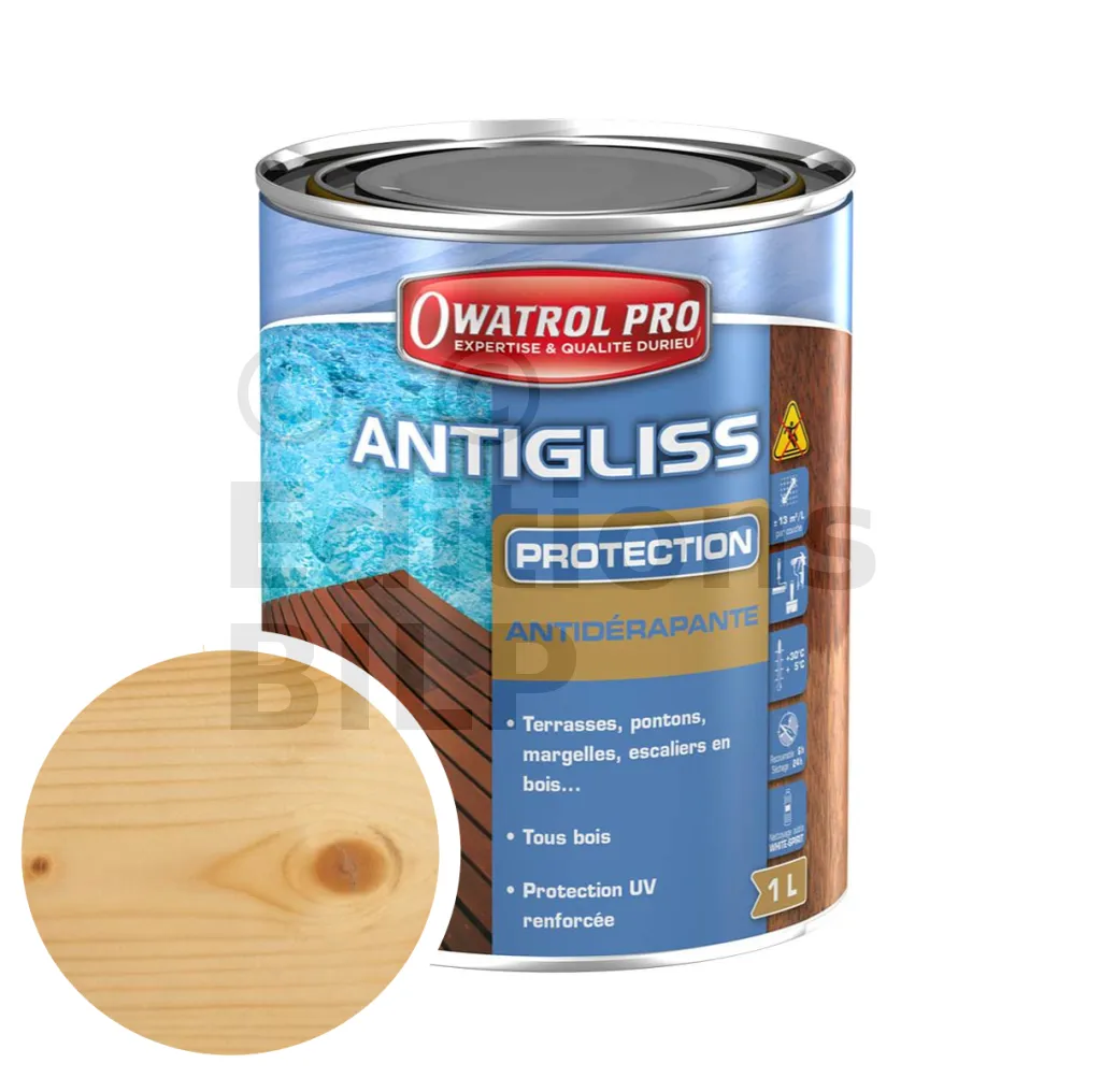 mélanger hélicoïdal approprié). - Sur support préparé, appliquer une couche d’ANTIGLISS sur la totalité de la lame dans le sens des fibres du bois.