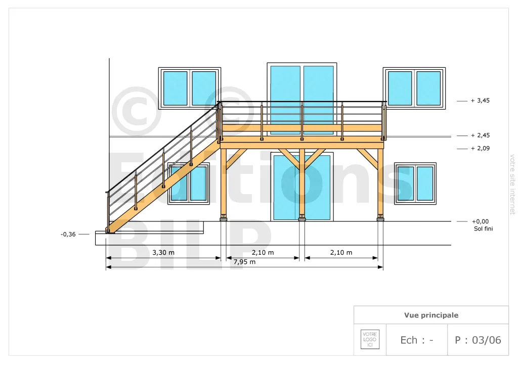 - Le calcul de la structure de votre terrasse (dimensionnement des éléments en bois). Il s’agit de la prestation : la vérification des plans