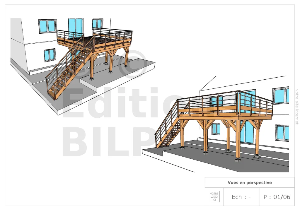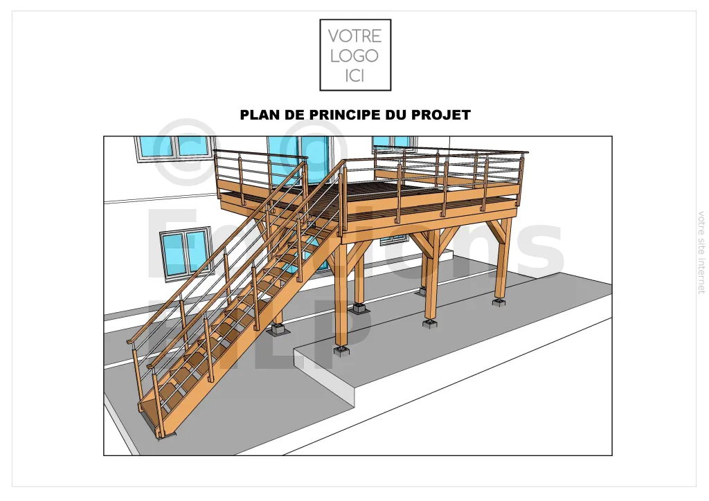 - Les plans de structure, les plans détaillés de la réalisation, une liste des matériaux avec un devis estimatif des coûts, une animation 3D de votre future terrasse. Pour ce type de prestation, nous vous proposons la prestation complète de plan sur mesure