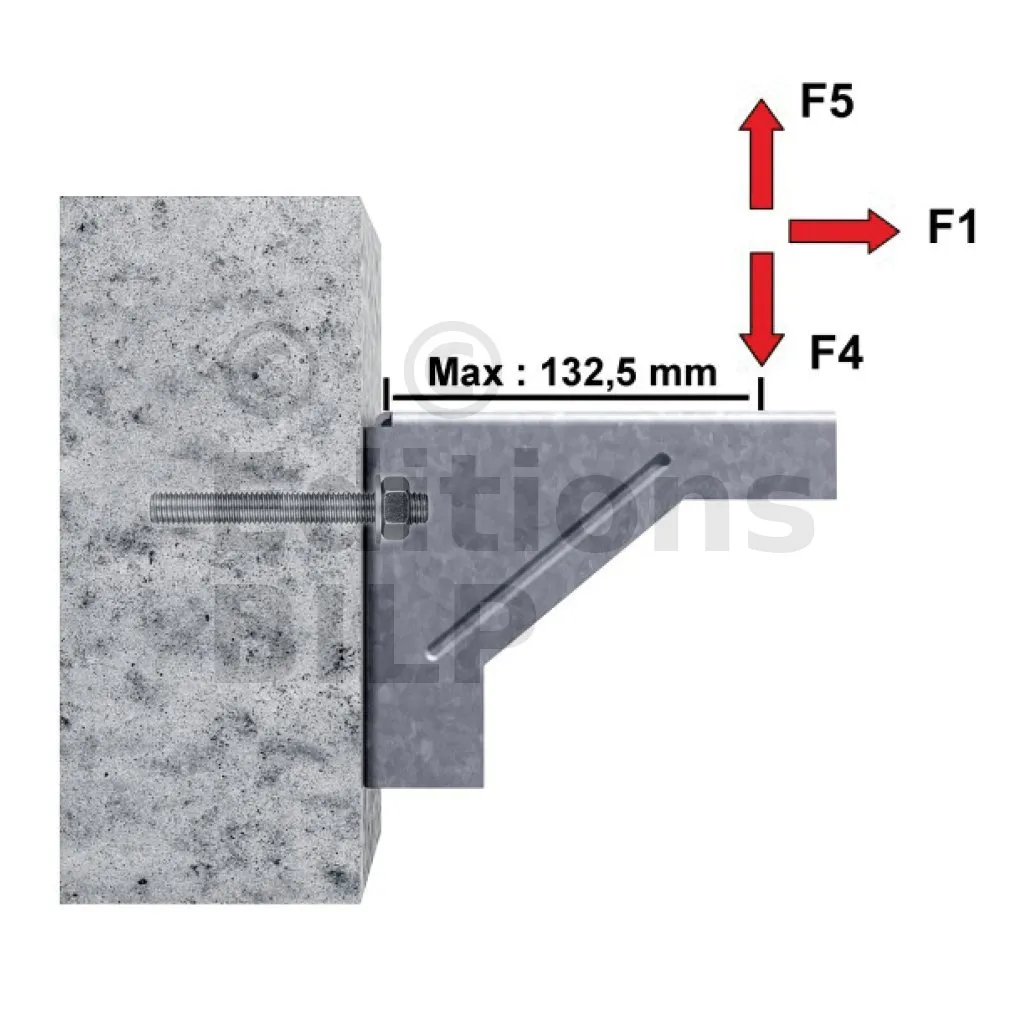 Compte-tenu des charges à reprendre, il est indispensable de vérifier la résistance des ancrages et du béton. En effet, dans certains cas, la résistance de l’ACW155 peut être limitée par la reprise de charge du béton et des ancrages.