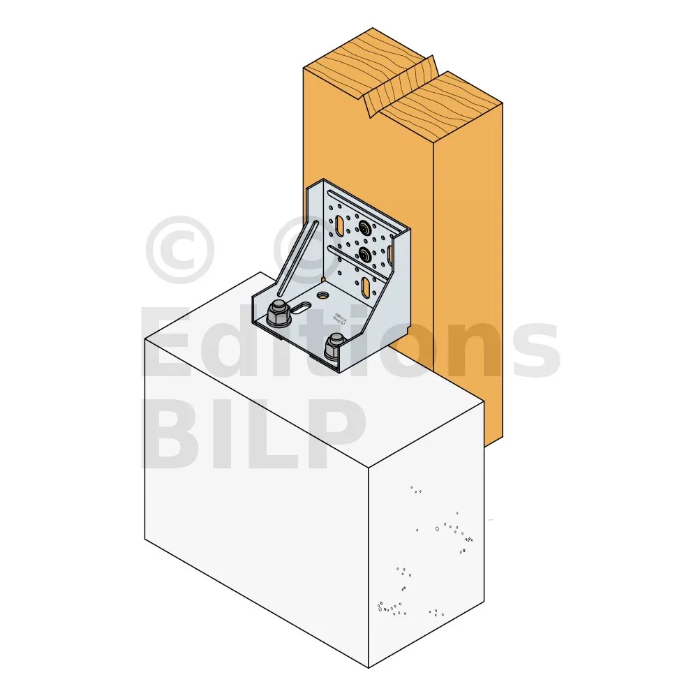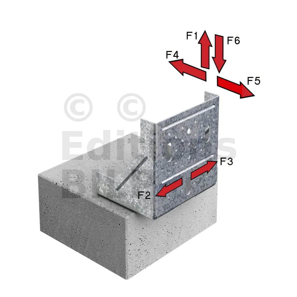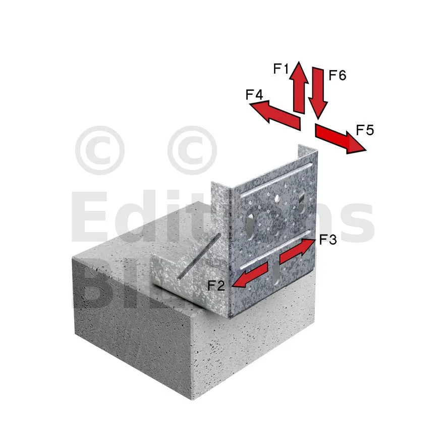 Ce connecteur a été développé pour être utilisé avec des murs rideaux bois, fixés sur dalle béton. Il peut être utilisé dans plusieurs configurations en fonction des besoins. Sa forme particulière lui permet de reprendre des charges importantes sans aucune déformation.
