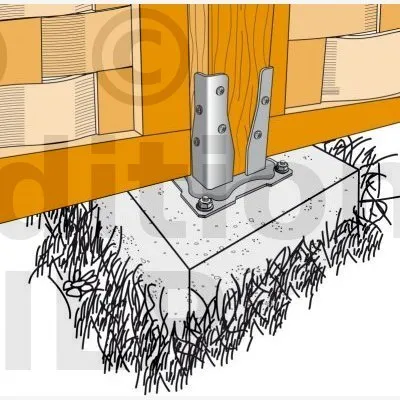 - Cheville mécanique : goujon WA M10-78/5 ou alternative FM-753 CRACK 3DG M10x90/10 (revêtement adapté pour un usage en extérieur).