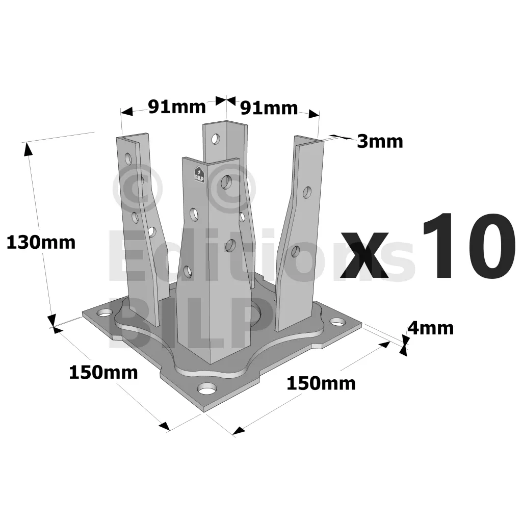 - MatériauAcier DD11 suivant NF EN 10111, Finition galvanisation à chaud suivant NF EN ISO 1461.
