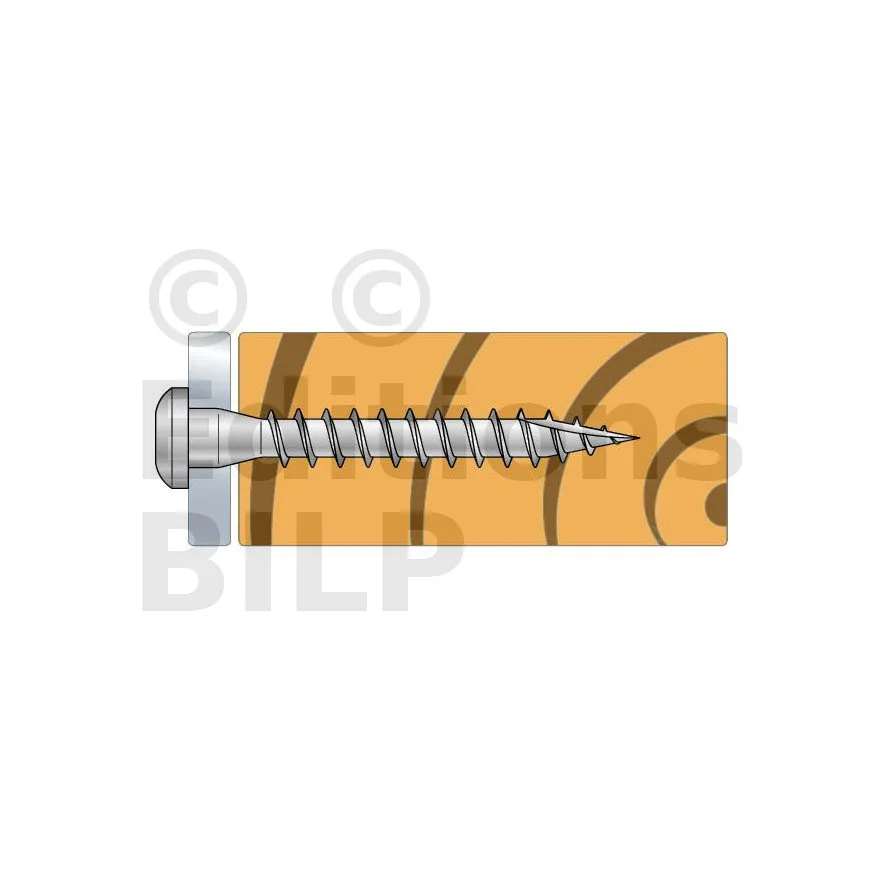 - Le filetage spécifique au bois permet une pénétration facile et rapide dans le bois : pas de fendage du bois,