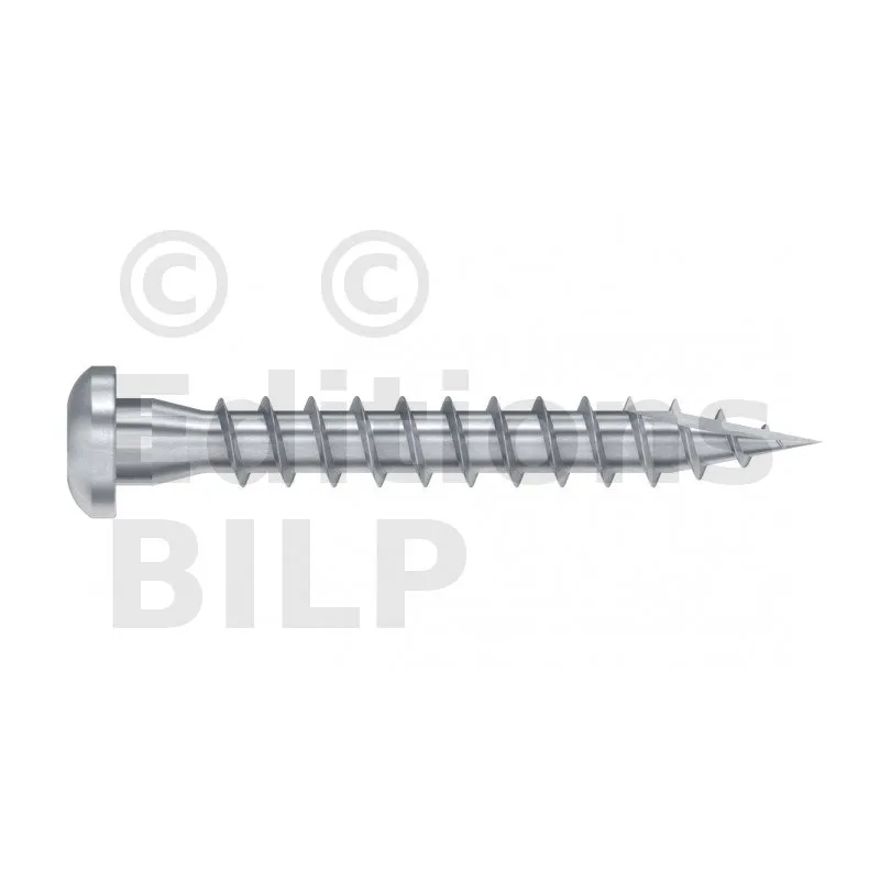 - Le filetage spécifique au bois permet une pénétration facile et rapide dans le bois : pas de fendage du bois,