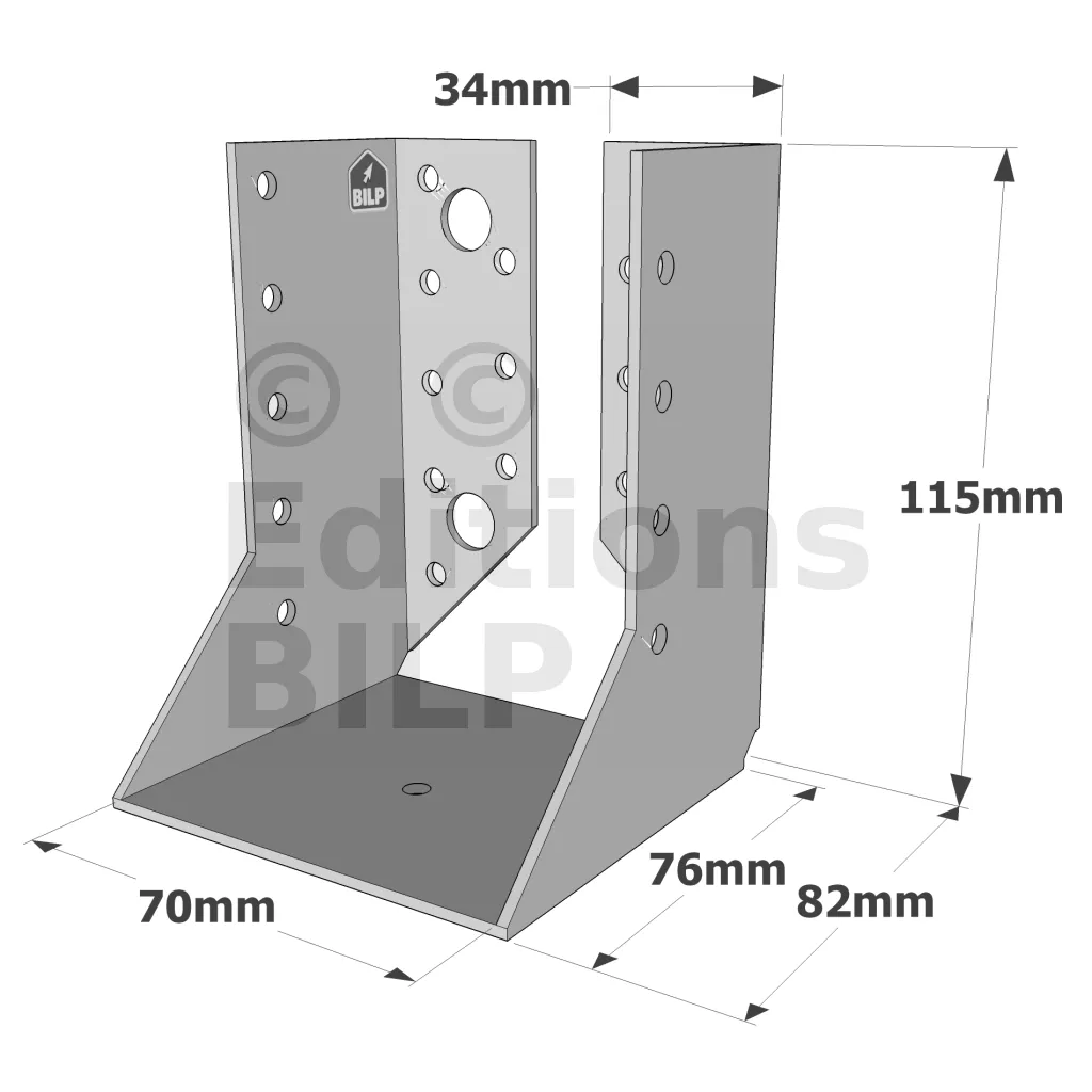 - Robustesse et discrétion : Grâce à leur conception en acier galvanisé, ces sabots sont robustes et résistent aux conditions climatiques difficiles. Les ailes intérieures permettent une intégration discrète, préservant l’esthétique de la structure.
