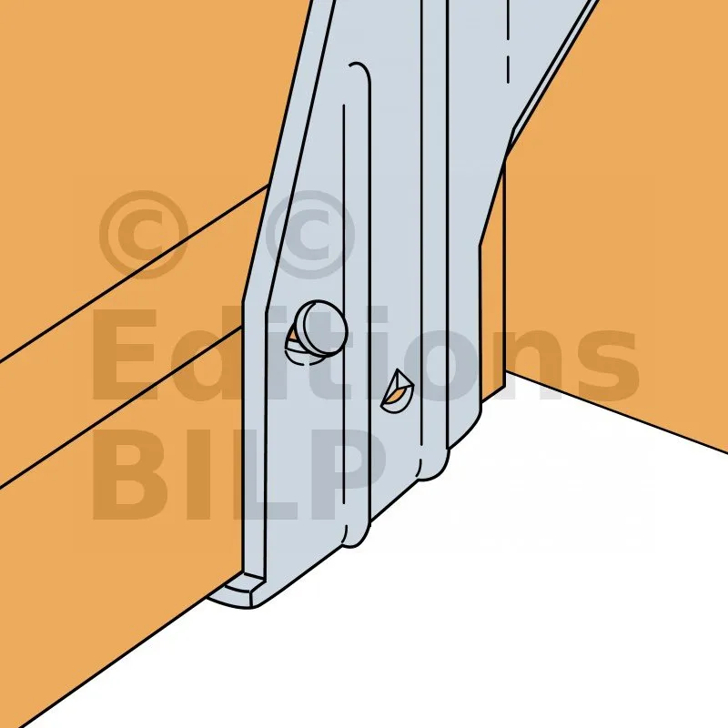 Dans le cas d’un effort au soulèvement, insérer 2 pointes N3.75x30 mm à 45° dans la membrure basse.