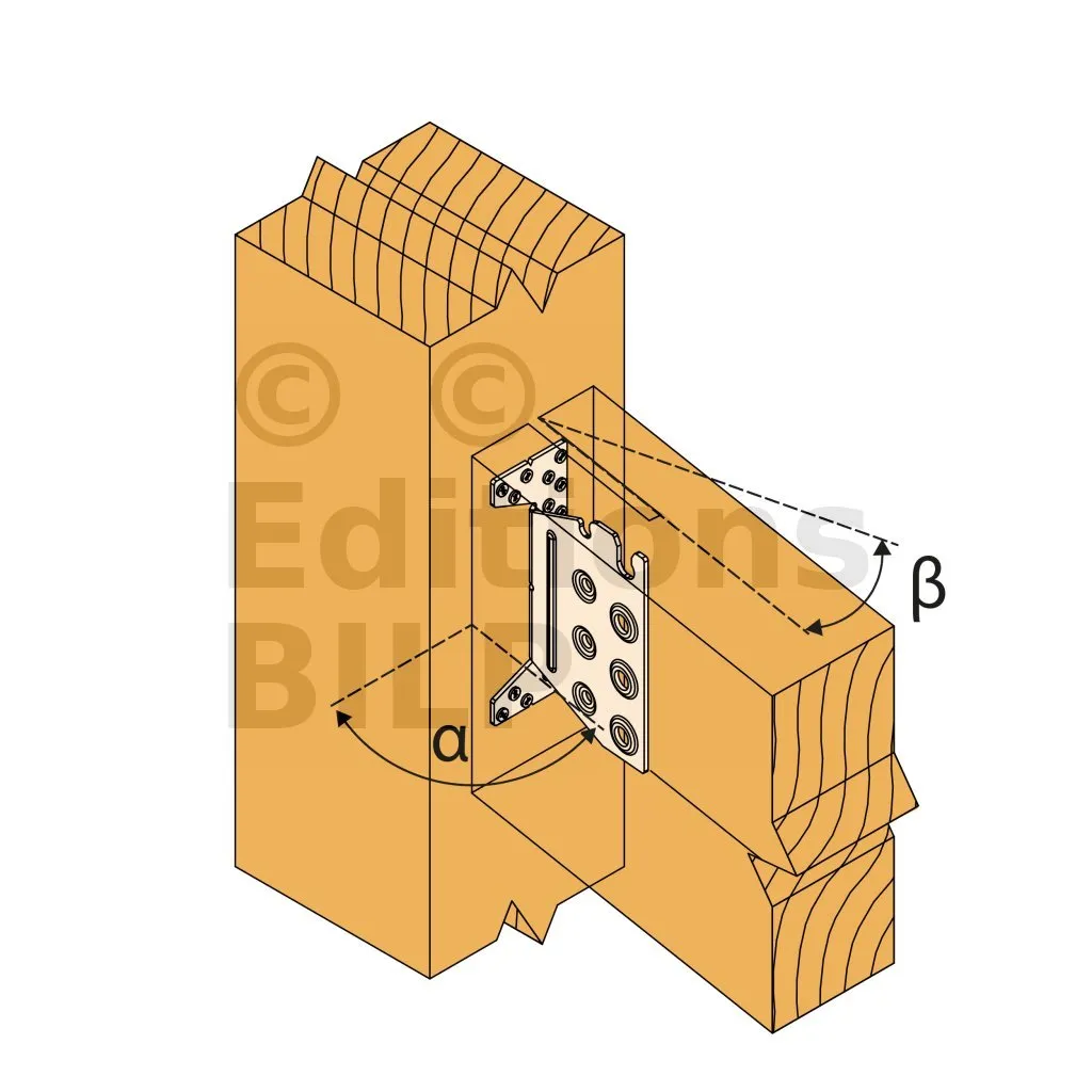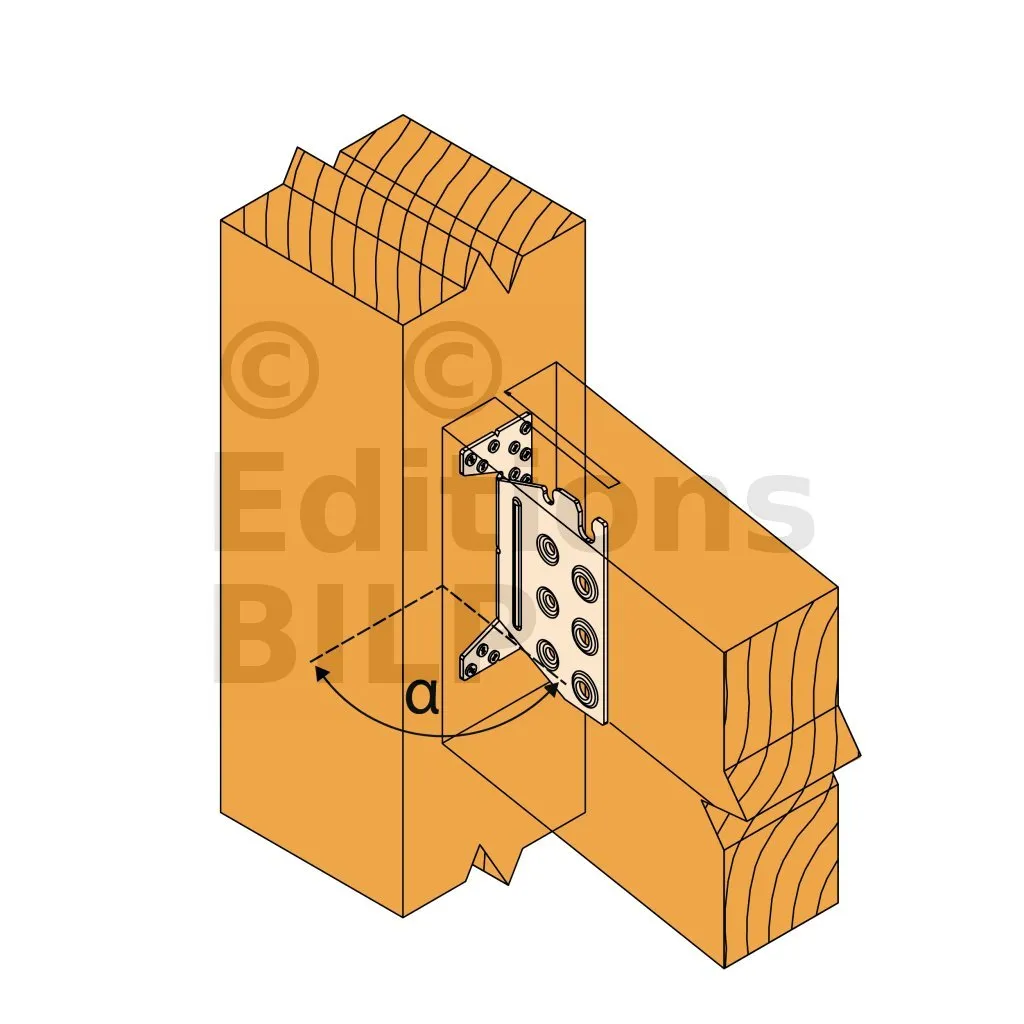 L’étrier TUS à âme intérieure permet un assemblage invisible. Plié sur demande, convient aux applications avec un angle allant de 30 à 85°. L‘encoche en tête facilite la pose sur le chantier.