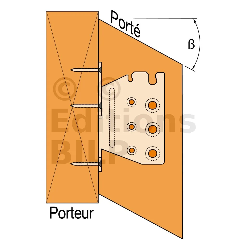 - Fixation solive sur poutre - clouage total - avec pente et angle α=60°Porteur : 6XCNA4,0x50 ou CSA5,0x40 - Porté : 4XSTD8