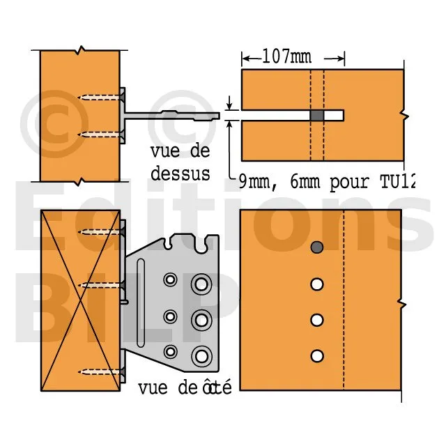 1- Réaliser une entaille verticale dans la poutre portée (largeur 6 mm pour le TUS12 et largeur 9 mm pour les TUS16 à TUS28),