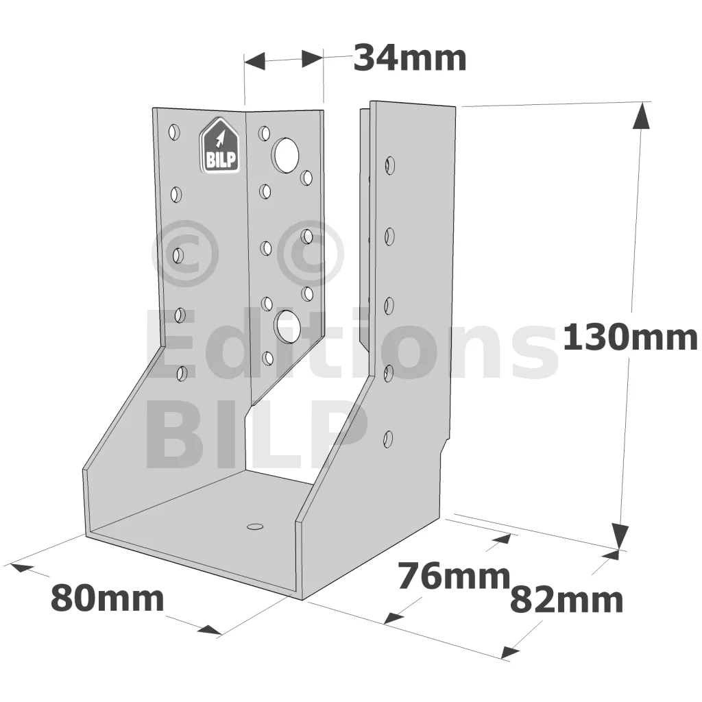 - Robustesse et discrétion : Grâce à leur conception en acier galvanisé, ces sabots sont robustes et résistent aux conditions climatiques difficiles. Les ailes intérieures permettent une intégration discrète, préservant l’esthétique de la structure.