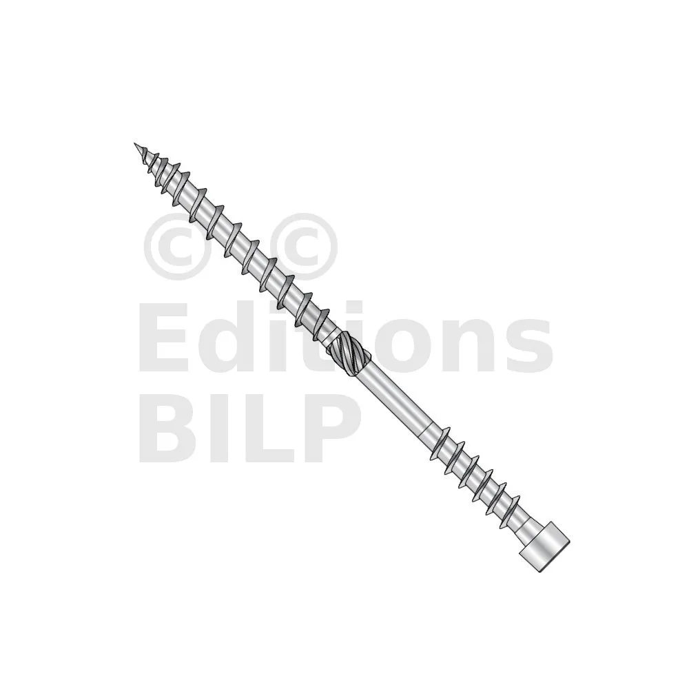 - Tête cylindrique : diminue l’éclatement du bois et rend la fixation invisible dans le bois,