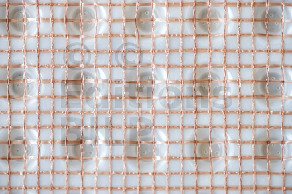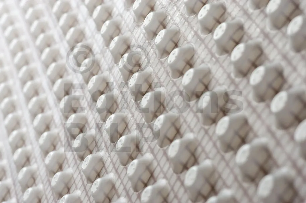 - MatériauNappe à excroissances en polyéthylène haute densité associée à un treillis en polyéthylène brun.