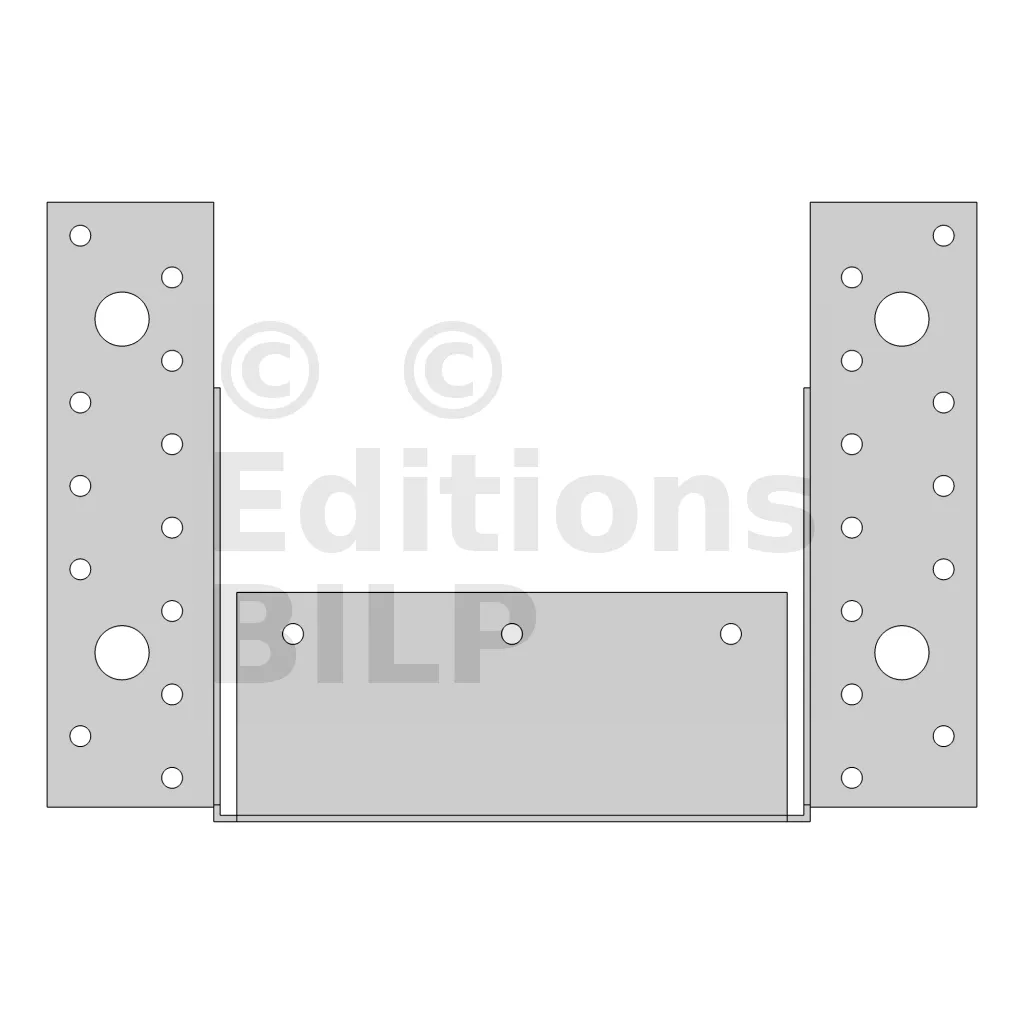 - Perçages sur portéFlancs : 6Ø5 ; 8Ø5x7.5 - Fond : 10Ø5