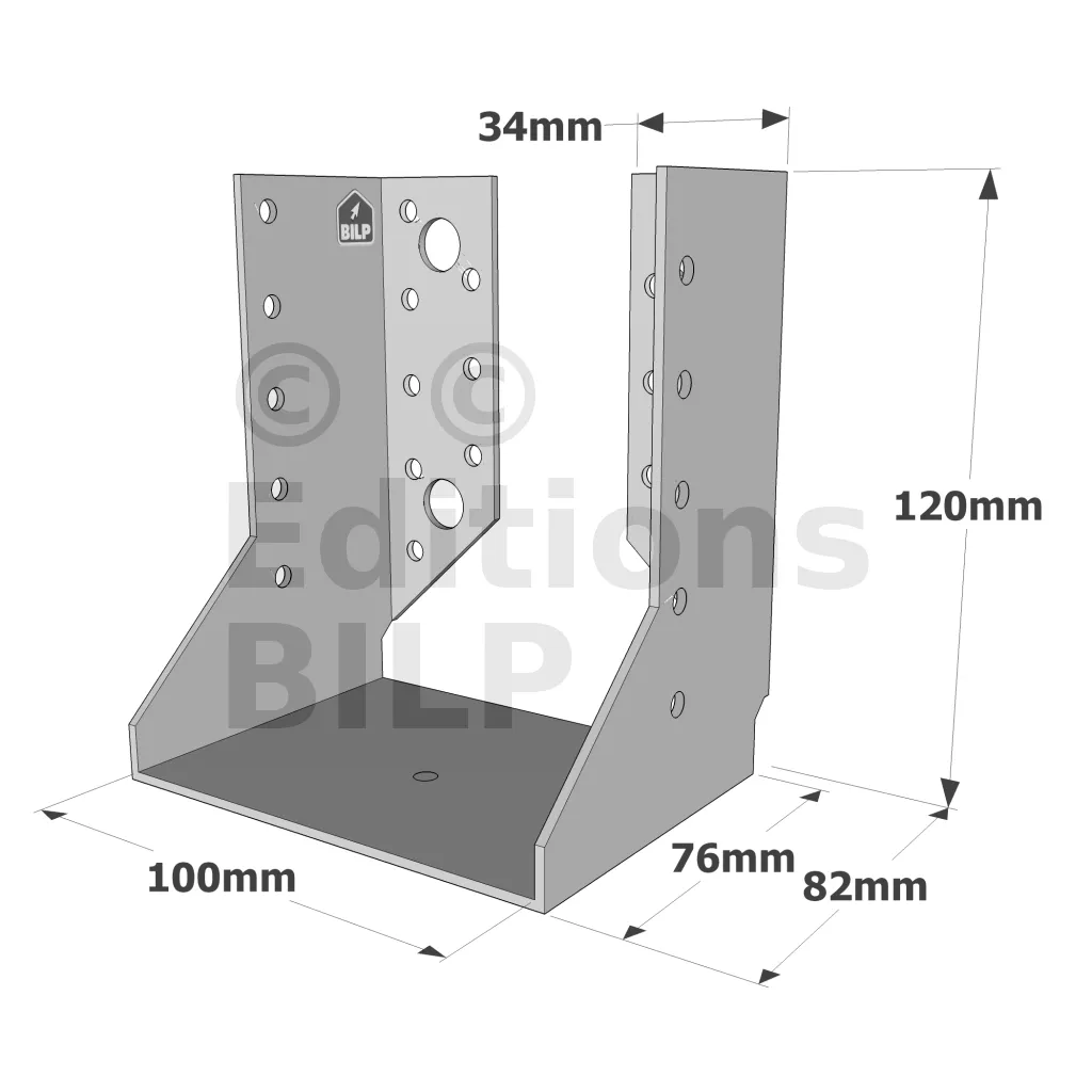 - Robustesse et discrétion : Grâce à leur conception en acier galvanisé, ces sabots sont robustes et résistent aux conditions climatiques difficiles. Les ailes intérieures permettent une intégration discrète, préservant l’esthétique de la structure.