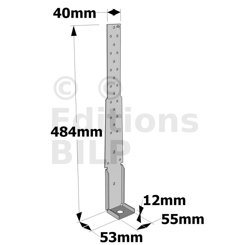 Ancrage pour montants d’ossature multi-applications 55x484x53mm épaisseur 2mm - Réf. MAH485/2