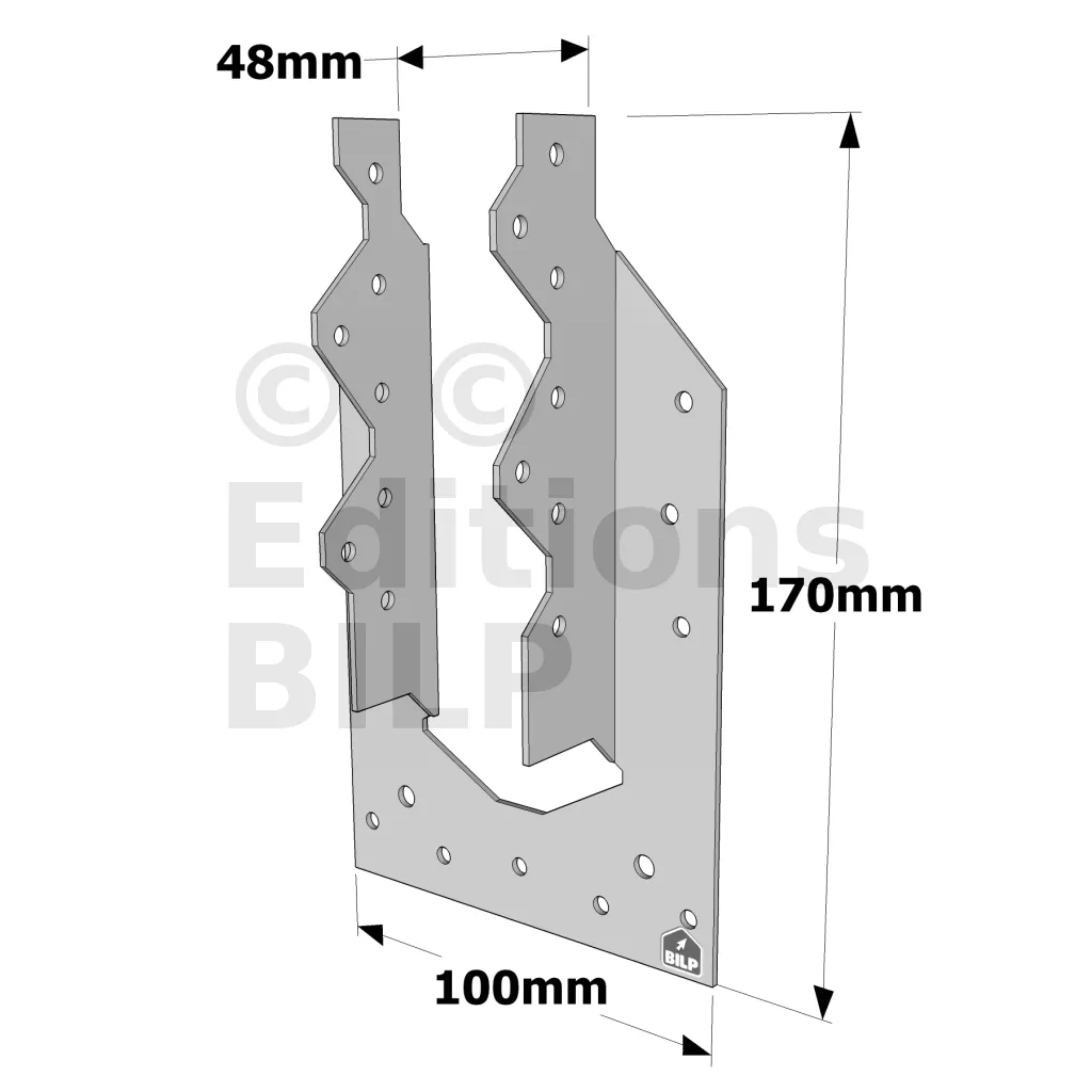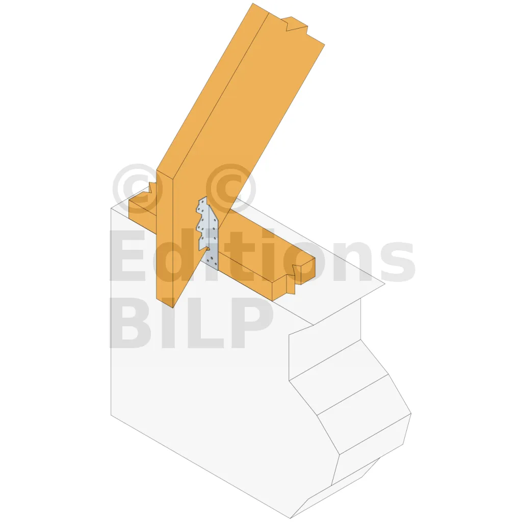 Le pied de chevron PFP permet de raccorder un chevron avec la sablière à un poteau. Il assure ainsi la reprise du soulèvement des fermes situées au droit des pignons.