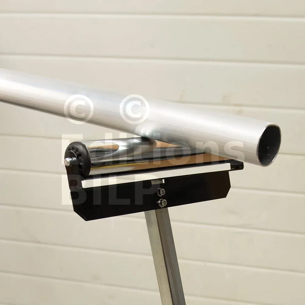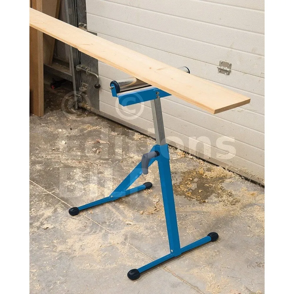 Support avec rouleau pour supporter les pièces de travail de grande taille et d’un poids pouvant aller jusqu’à 60 kg. Rouleau chromé à embase en acier ultra-résistant. Hauteur réglable de 685 à 1 080 mm.