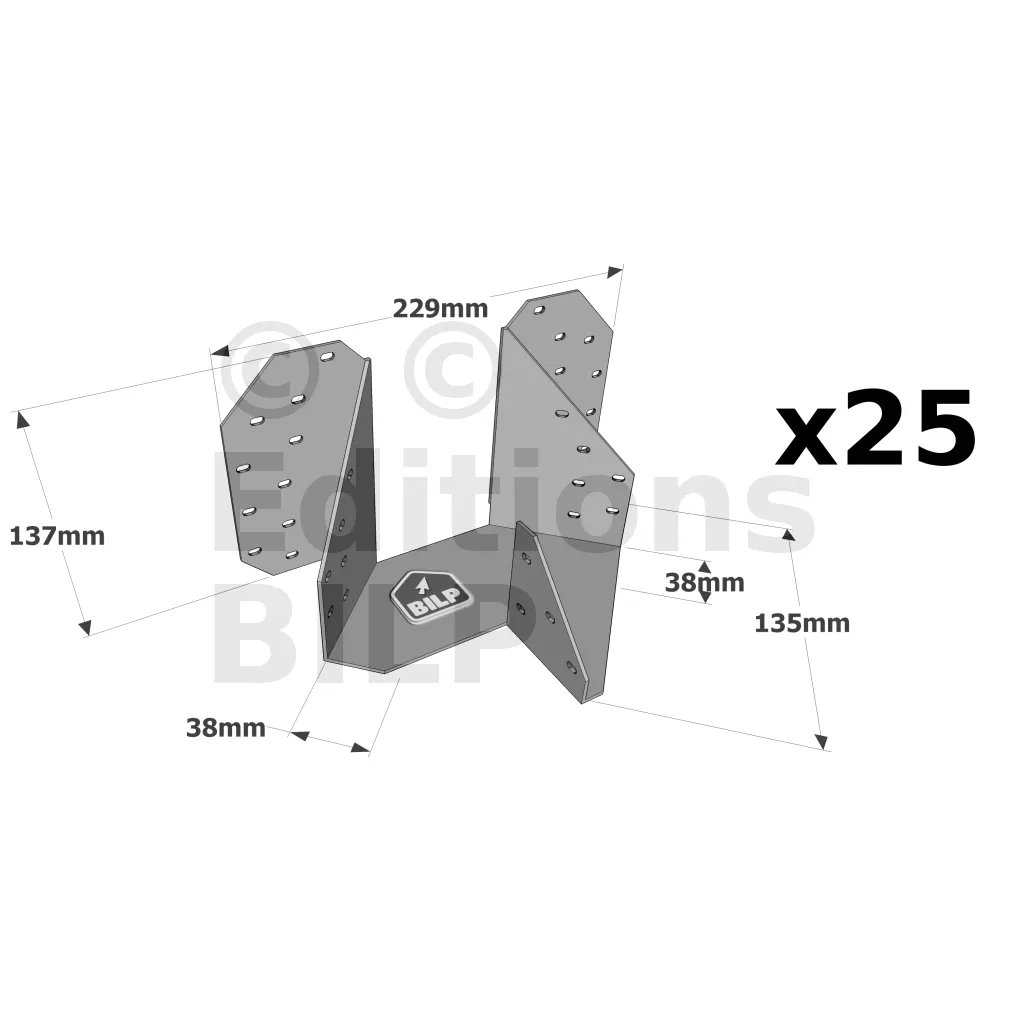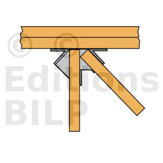 L’étrier pour croupe THJA26 est utilisé dans la fermette de section 38mm. Il permet la réalisation d’une croupe en assemblant les demi-fermes d’arêtier et d’empannon.