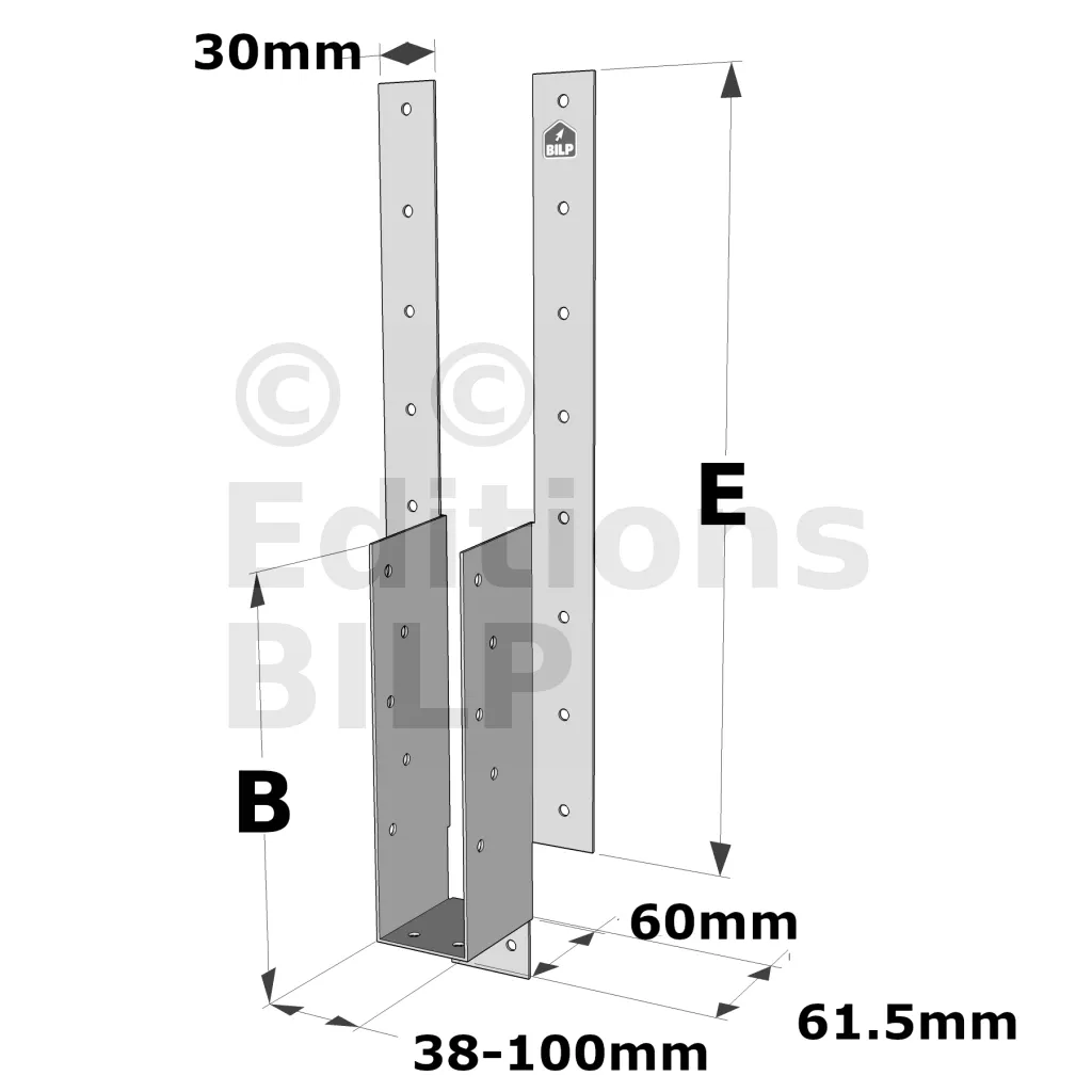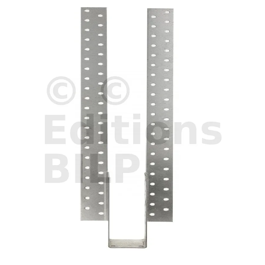 - Ailes pliées pour ajuster la hauteur du sabot par rapport à l’élément porteur. Clouer les ailes rabattues.