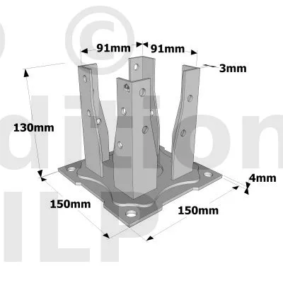 Le pied de poteau carré sur platine AG527P est préconisé dans la réalisation de petits ouvrages tels que les clôtures de jardin. Très facile à démonter, il est particulièrement adapté pour des structures temporaires. Le AG527P est à boulonner.