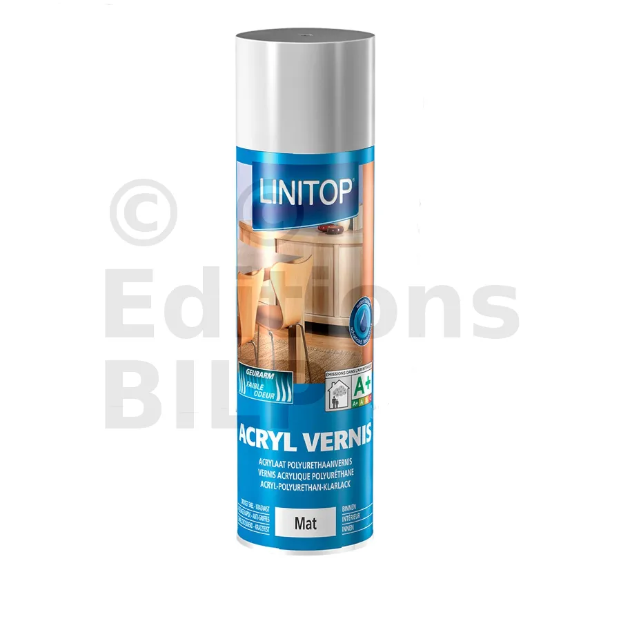 Acryl vernis spray est destiné à usage intérieur, pour la mise en peinture de petits objets ou de petites surfaces sur boiseries, meubles, dessus de table, en les protégeant et en les embellissant. Convient également pour les bois indigènes et tropicaux, anciens vernis propres, adhérents et dépolis.