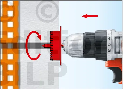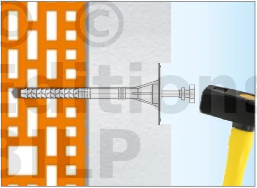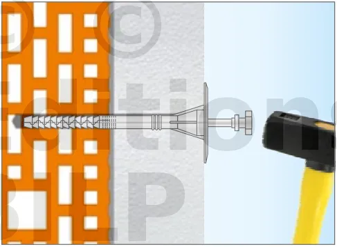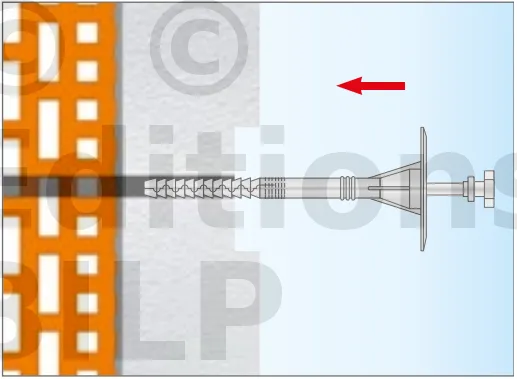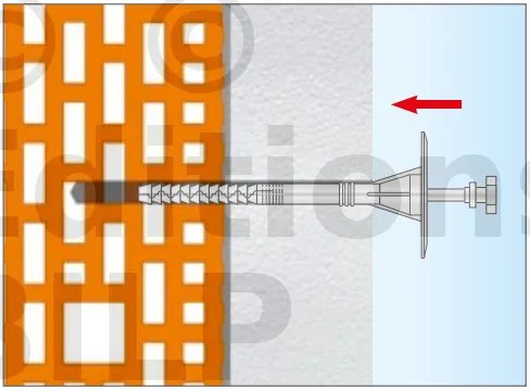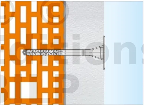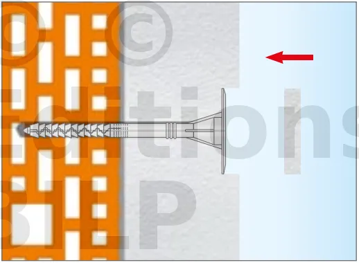 - Enfoncer le corps de la fixation de manière à ce que la rondelle de fixation soit orientée vers le matériau d’isolation thermique.